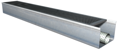 Canaló prismàtic, de xapa d'acer galvanitzat, de 150x100 mm de secció i 1,2 mm de gruix, amb reixeta prefiltre; amb tub de drenatge de PVC corrugat, diàmetre nominal 50 mm, amb perforacions en tot el seu desenvolupament, per a recollida d'aigües d'enjardinament vertical amb cultiu semihidropònic en geoproductes, per a exterior, sistema Fytotextile "TERAPIA URBANA", amb una superfície de fins a 5 m²; format per peces preformades, fixades amb suports galvanitzats col·locats cada 50 cm, amb una pendent mínima del 0,5%, connexionat a la xarxa de sanejament. | ||